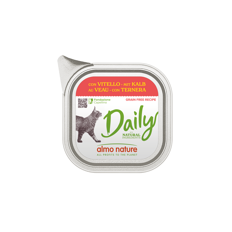Almo Nature Daily Pate z cielęciną to solidna, pełnoporcjowa propozycja bytowa. 60% zawartości mięsnej oraz dodatek prebiotycznej inuliny to fundament sytości i sprawnego trawienia. Cielęcina jest mięsem bardzo delikatnym, co czyni ten pasztet świetnym wyborem dla kotów o bardziej wybrednym podniebieniu. Produkt kompletny.