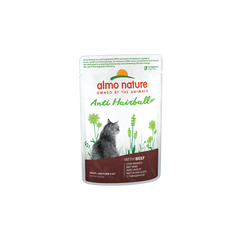 Zadbaj o komfort trawienny swojego kota i zapomnij o problemach z kulami włosowymi! Almo Nature Holistic Functional Anti Hairball z wołowiną to kompletna karma pełnoporcjowa, stworzona specjalnie dla dorosłych kotów z tendencją do gromadzenia się bezoarów w układzie pokarmowym. Receptura wzbogacona o błonnik roślinny oraz inulinę (naturalny prebiotyk) aktywnie wspiera pasaż jelitowy, ułatwiając naturalne wydalanie połkniętej sierści. Dzięki dodatkowi smakowitej wołowiny, tauryny oraz biotyny, każda saszetka 70g dostarcza wszystkich niezbędnych składników odżywczych, dbając jednocześnie o zdrową skórę i lśniącą okrywę włosową Twojego pupila.