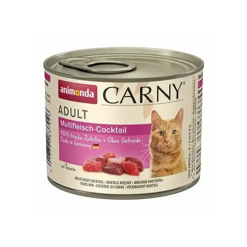 ANIMONDA Carny Adult Cat Koktajl Mięsny 200g to wysokomięsna mokra karma dla kota, zapewniająca naturalne, zbilansowane żywienie i bogaty, mięsny smak każdego dnia.