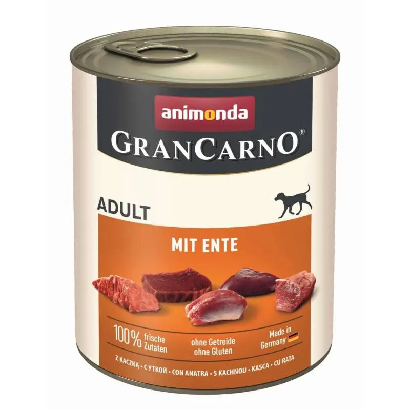 ANIMONDA GranCarno Adult z Kaczką 800g to pełnoporcjowa mokra karma dla dorosłych psów. Zawiera 48% wieprzowiny oraz 20% kaczki. Wysoka zawartość mięsa i intensywny smak wspierają kondycję oraz codzienną energię psa.